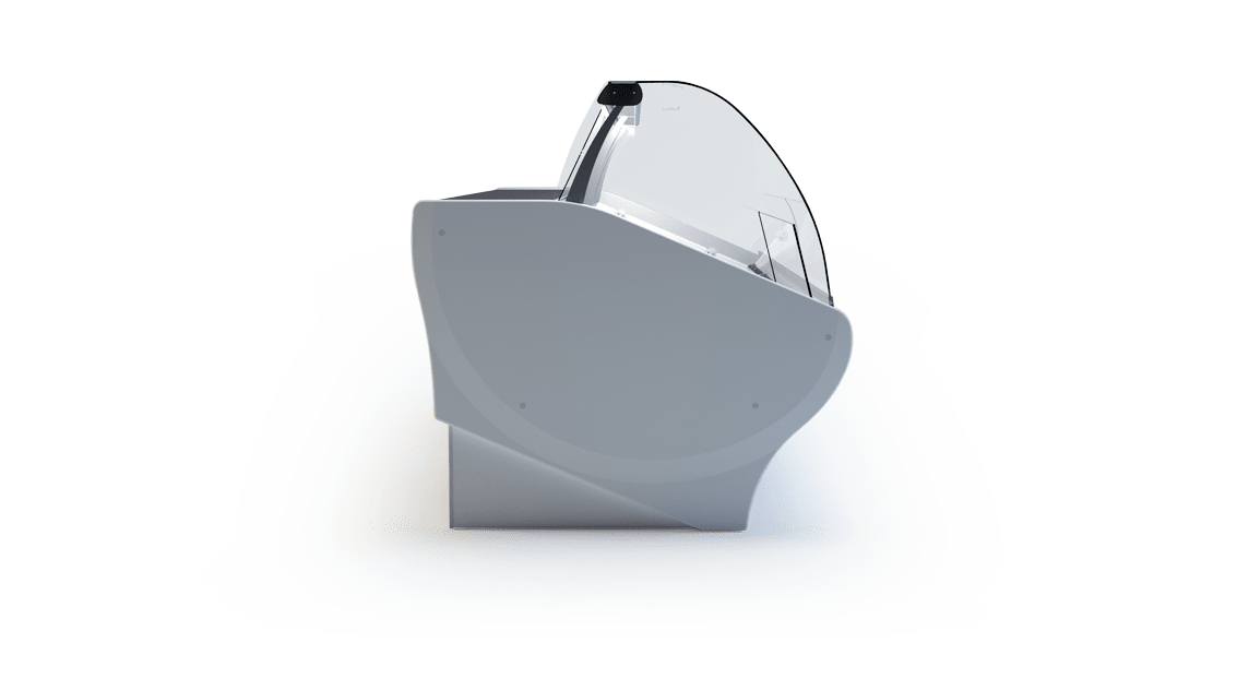 Opcje dodatkowe: przegroda ruchoma, przegroda stała górna ( szklana w przestrzeni ekspozycyjnej), przegroda stała dolna ( z blachy nierdzewnej w zasobniku), przestrzeń ekspozycyjna z blachy nierdzewnej, komora przechowalnicza z blachy nierdzewnej, przysłonki nocne z pleksy, blat roboczy granitowy szary, półka frontowa dla klienta z profili aluminiowych, elektryczne grzałki odszraniania parownika.
