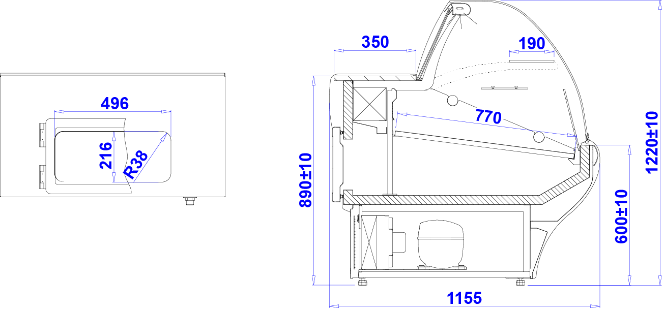 - lampa ze świetlówką LED (barwa do wyboru: biała, cukiernicza lub mięsna)