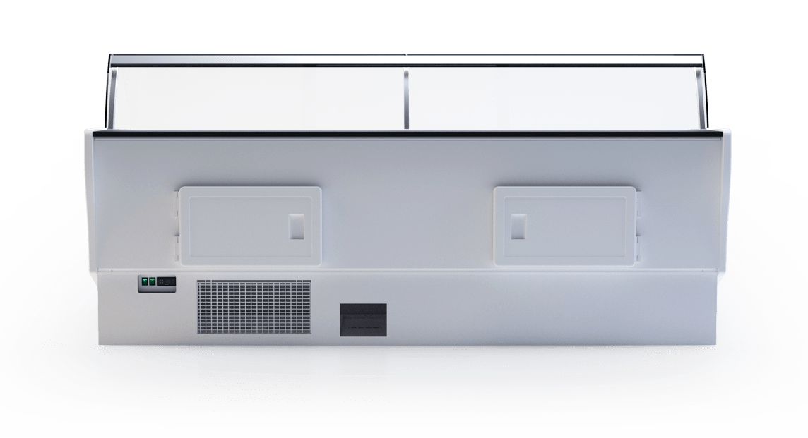 Opcje dodatkowe: przegroda ruchoma, przegroda stała górna ( szklana w przestrzeni ekspozycyjnej), przegroda stała dolna ( z blachy nierdzewnej w zasobniku), przestrzeń ekspozycyjna z blachy nierdzewnej, komora przechowalnicza z blachy nierdzewnej, przysłonki nocne z pleksy, blat roboczy granitowy szary, półka frontowa dla klienta z profili aluminiowych, elektryczne grzałki odszraniania parownika.