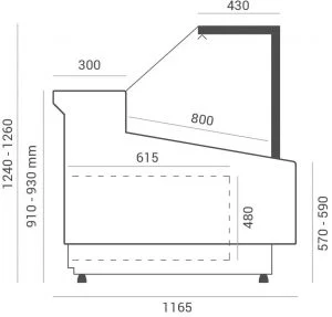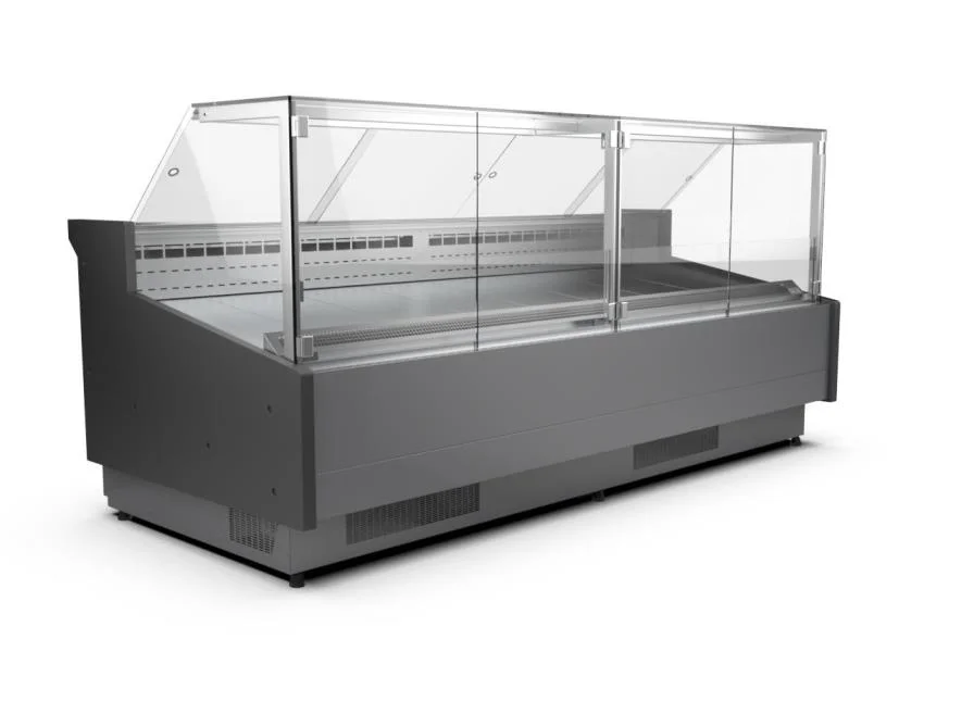 Opcje dodatkowe: oświetlenie LED mięsne,elektryczne grzałki odszraniania parownika, przegroda stała - szkło, przegroda regulowana - plexi, półka od strony klienta profil aluminium, blat granitowy, niestandardowy kolor elementów metalowych.