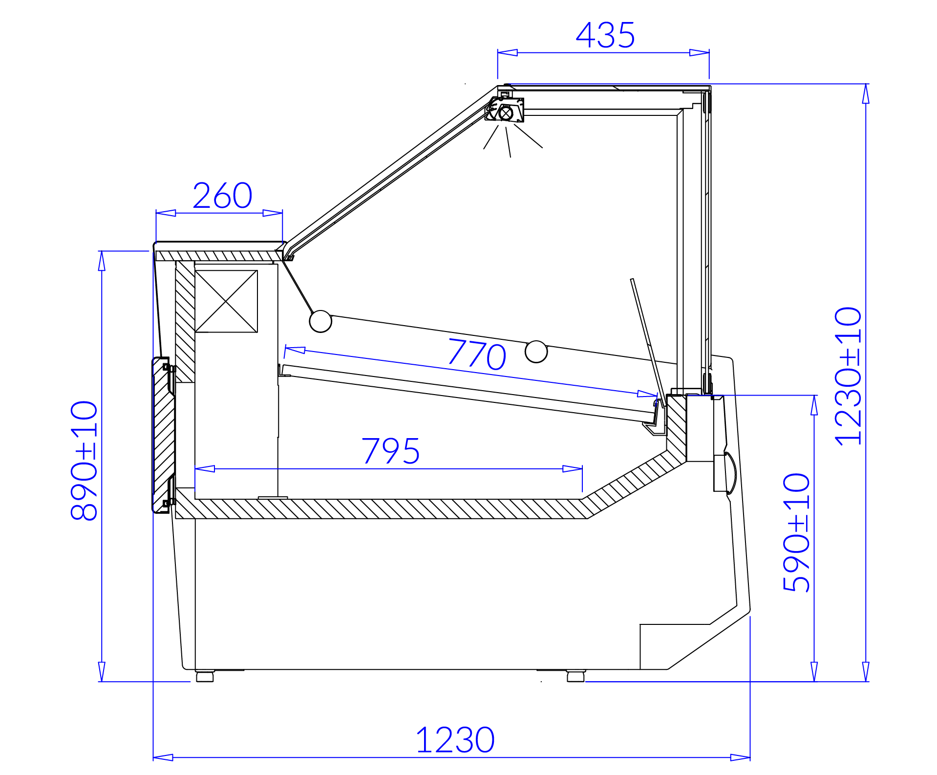- lampa ze świetlówką LED (barwa do wyboru: biała, cukiernicza lub mięsna)
