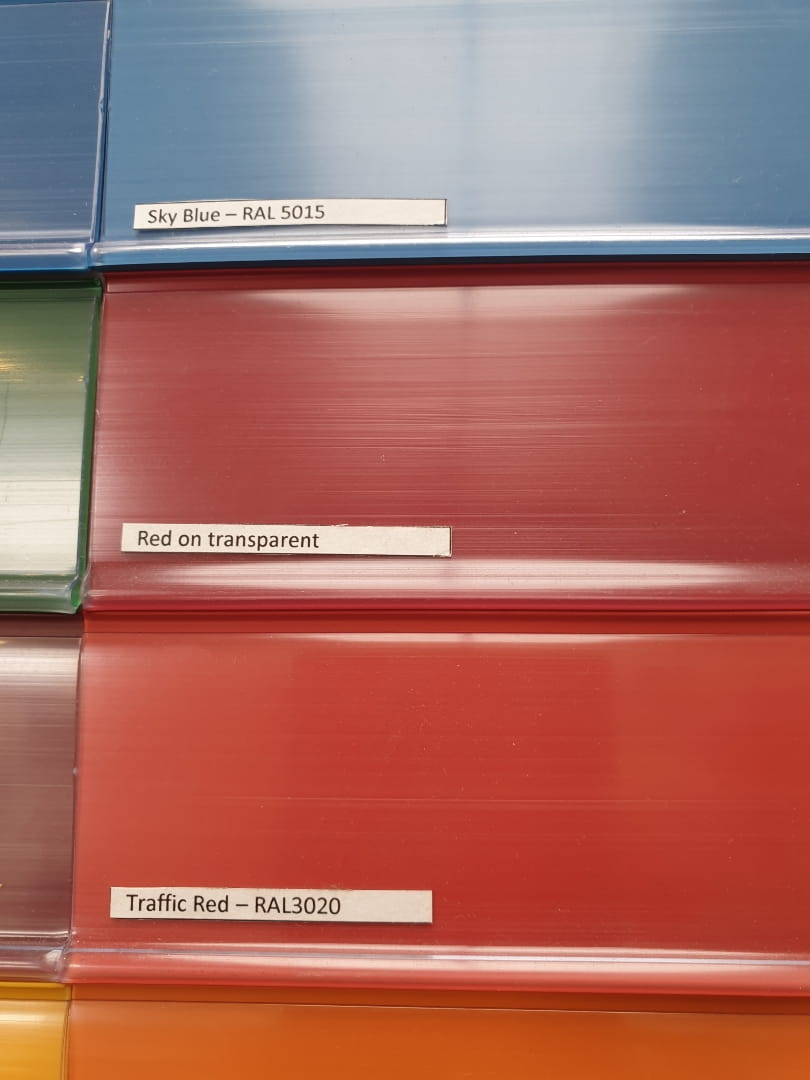 Dostępne kolory: żółty, zielony, niebieski, pomarańczowy, czerwony, szary, biały, przezroczysty. Inne kolory na zapytanie.