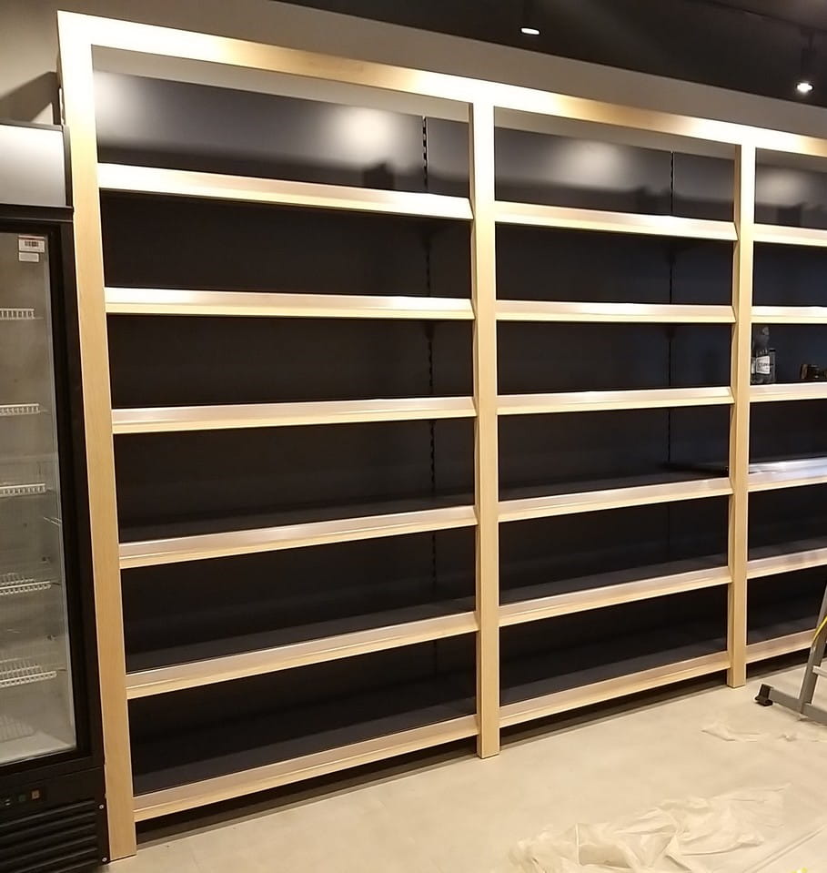 Istnieje również możliwość oświetlenia półek w regale. Średnia cena - od 140,00zł brutto/mb półki, (cena uzależniona od długości ciągu, mocy zasilacza).