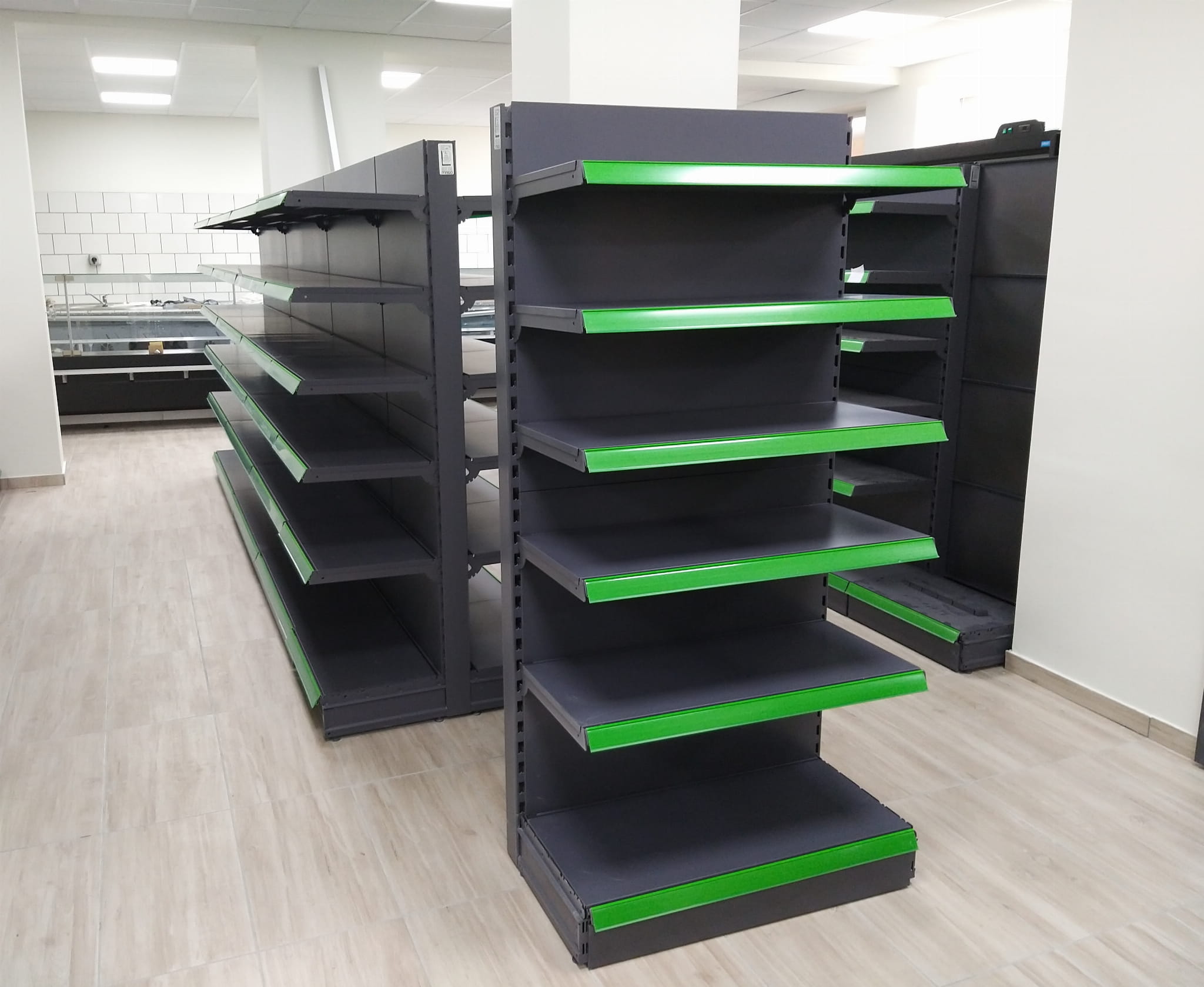 Dodatkowe wyposażenie regału: osłona dolna podestu, listwa cenowa klejona/nakładana, ogranicznik towaru.