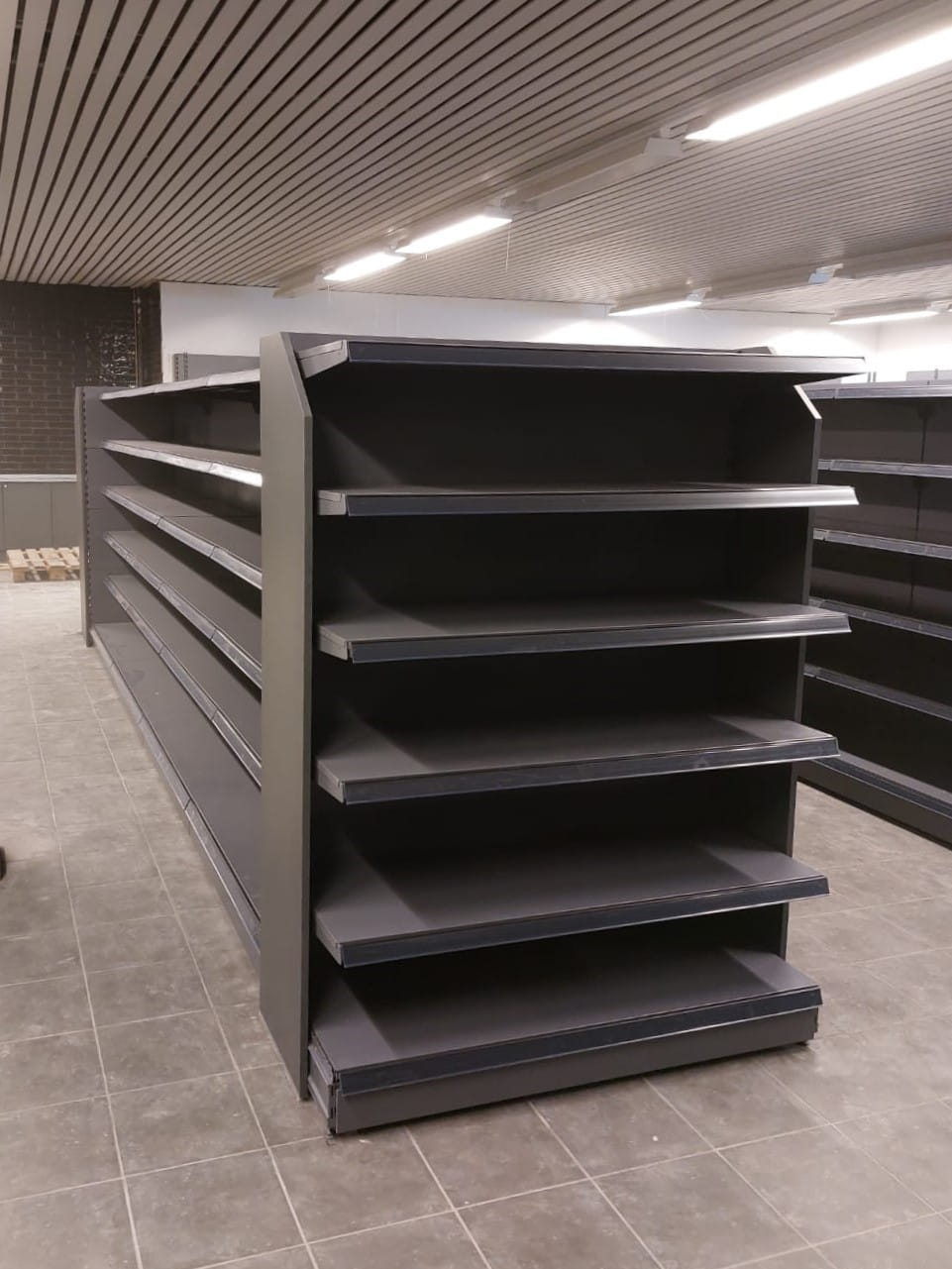 Dodatkowe wyposażenie regału: osłona dolna podestu, listwa cenowa klejona/nakładana, ogranicznik towaru.
