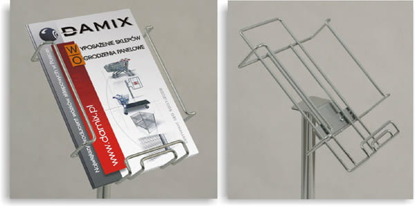 Stojak z zasobnikiem na ulotki służy jako wolnostojący ekspozytor ulotek reklamowych formatu A4-A5.