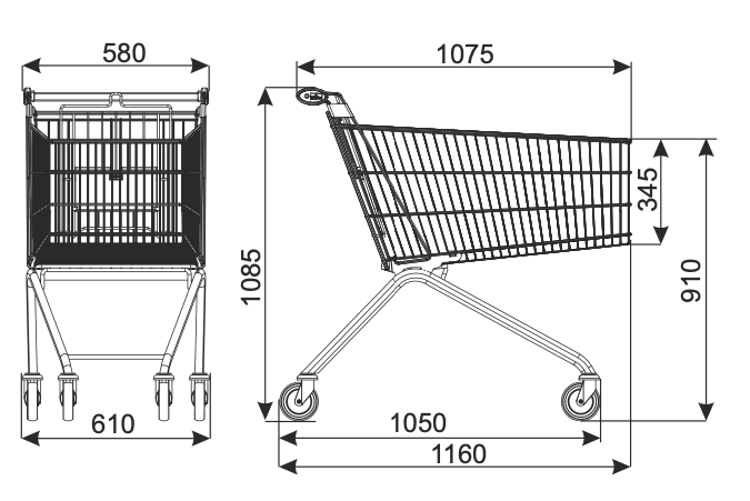 Dodatkowe akcesoria: m.in. koła na chodniki ruchome lub z hamulcem, zamek na monety, grafika z logo na rączce- na zapytanie.